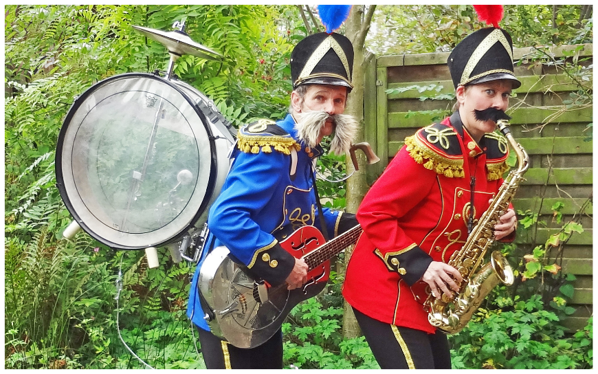 Dit Bijzondere Duo in Colour vermaakt uw gasten of bezoekers graag met hun vrolijke Wereldmuziek, Zuid-Amerikaans, Klezmer, Zigeunerjazz, Marsmuziek, maar ook kinderliedjes. De muzikanten spelen op Gitaar en Saxofoon en veel tweestemmige zang. De act is ook als trio mogelijk, dan is er een percussionist bij. Kortom een feest om naar te luisteren!