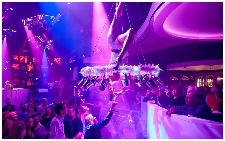 Breng iets bijzonders naar je event met de Champagne Luchtring, een acrobatische act. De acrobate, hangend ondersteboven tussen champagneflessen, schenkt champagne uit terwijl ze sierlijk beweegt. Met sprankelende LED-lichtjes maakt ze het helemaal magisch. Geschikt voor zowel binnen- als buitenlocaties, van VIP-feesten tot bruiloften.