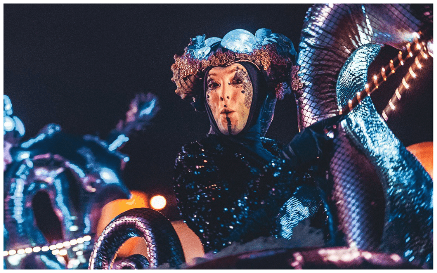 Betreed een betoverende wereld waarin schijnbaar mythische wezens tot leven komen. Deze buitengewone figuren lijken verwant aan de majestueuze Dansende Zeepaardjes Steltenlopers uit de diepe oceaan. Hun nieuwsgierigheid leidt hen naar de kust, waar ze de wondere wereld van het vasteland ontdekken. En wanneer de avond valt, wordt de magie pas echt tastbaar. Tientallen schitterende LED-lampjes worden ontstoken, waardoor een beeld ontstaat dat voor eeuwig in uw geheugen gegrift zal staan.