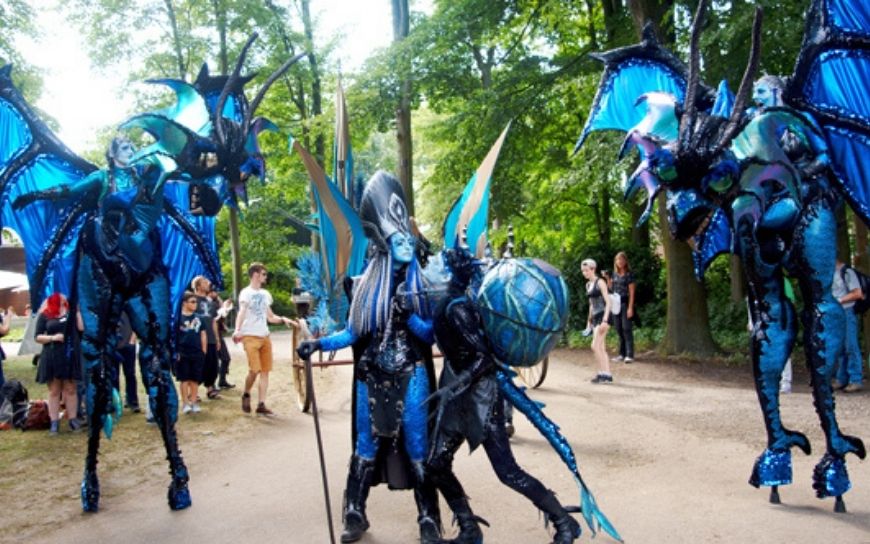 De Draken Wezens Steltenlopers verschijnen hoog boven het publiek, rijdend op hun eigen draken. Deze mysterieuze wezens bewegen nieuwsgierig tussen de mensen en kijken graag even van dichtbij. Durf jij de draken te ontmoeten?
