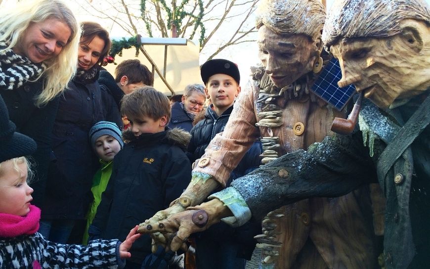 Houten figuren in winterse sferen