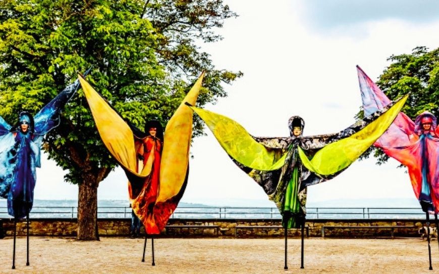 De Elementen Parade Steltenlopers zijn te boeken als duo, trio of volledige groep. Geschikt als mobiele act of parade en inzetbaar op festivals, straatprogramma’s, winkelcentra en events. Een sterke visuele act die zich makkelijk aanpast aan de setting.