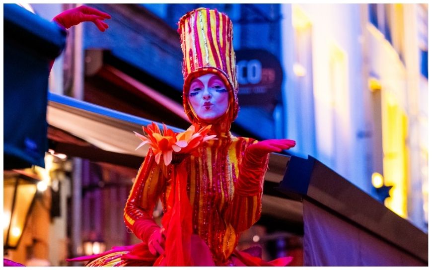 Met hun kleurrijke kostuums en sierlijke bewegingen brengen de steltenlopers een magische circussfeer, geliefd bij jong en oud.