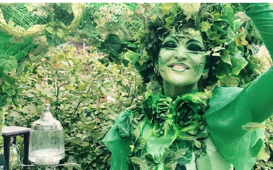 De Groene Fee verschijnt tussen het publiek en trekt meteen de aandacht met haar bijzondere kostuum. Met een glimlach maakt ze een praatje en verrast ze gasten met kleine lekkernijen of drankjes. Een speelse animatie act die sfeer brengt op elk evenement.