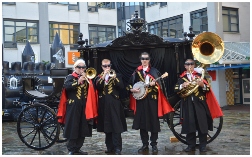 Mobiel Entertainment, Ontvangst Entertainment, Winkelcentrum Entertainment, Festival Act, Parade Act, Podium Act, Halloween Entertainment, Thema Entertainment, Dixieland Duo, Dixieland Trio, Dixieland Kwartet, Dixieland Orkest, Thema Halloween, Thema Griezel