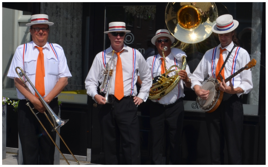 Koningsdag Entertainment, Mobiel Entertainment, Ontvangst Entertainment, Winkelcentrum Entertainment, Festival Act, Parade Act, Thema Entertainment, Dixieland Duo, Dixieland Trio, Dixieland Kwartet, Dixieland Orkest, Thema Holland, Thema Koningsdag