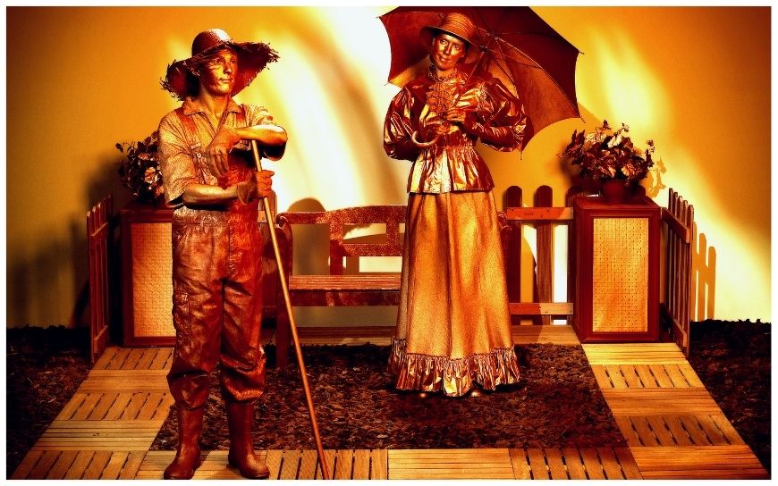 Dit levende standbeeld is zeer geschikt voor ontvangst, festivals en winkelcentra. De act past goed bij thema’s als natuur, goud en klassiek. De Koperen Dame en de Tuinman zijn samen te boeken, maar ook afzonderlijk inzetbaar.