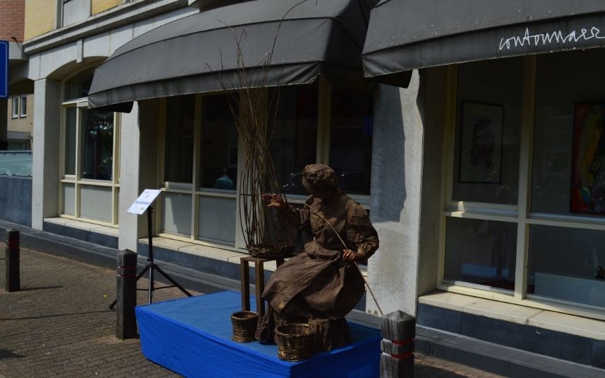 De Mandenvlechtster brengt een eeuwenoud ambacht tot leven. Met rustige hand vlecht zij ter plekke een nieuwe mand, terwijl haar kunstwerken om haar heen staan. Een sfeervolle act die bezoekers even terug in de tijd brengt.