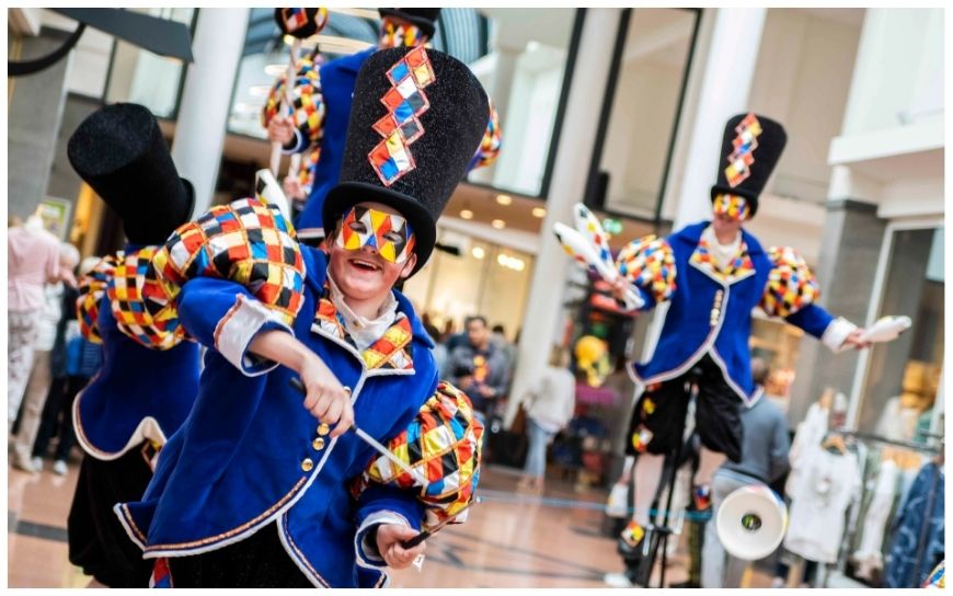 Parade Masque is ideaal voor circusacts, ontvangstentertainment en winkelcentra. Een veelzijdige parade die elk event bijzonder maakt.