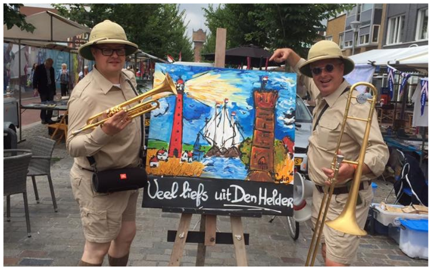 Een dixielandorkest in de huisstijl van uw bedrijf is een goede eyecatcher voor uw bedrijfsopening, marketing event, open huis, bedrijfspromotie etc. Deze heren hebben een grote ervaring op het gebied van bedrijfsopeningen. Het orkest kan aangepast worden in de kleuren van uw huisstijl en op de sousafoon komt een hoes met uw logo of reclameboodschap.