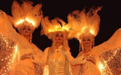 De engelen zorgen voor een rustige, sfeervolle uitstraling. De combinatie van beweging, licht en kostuum maakt deze act bijzonder om naar te kijken.