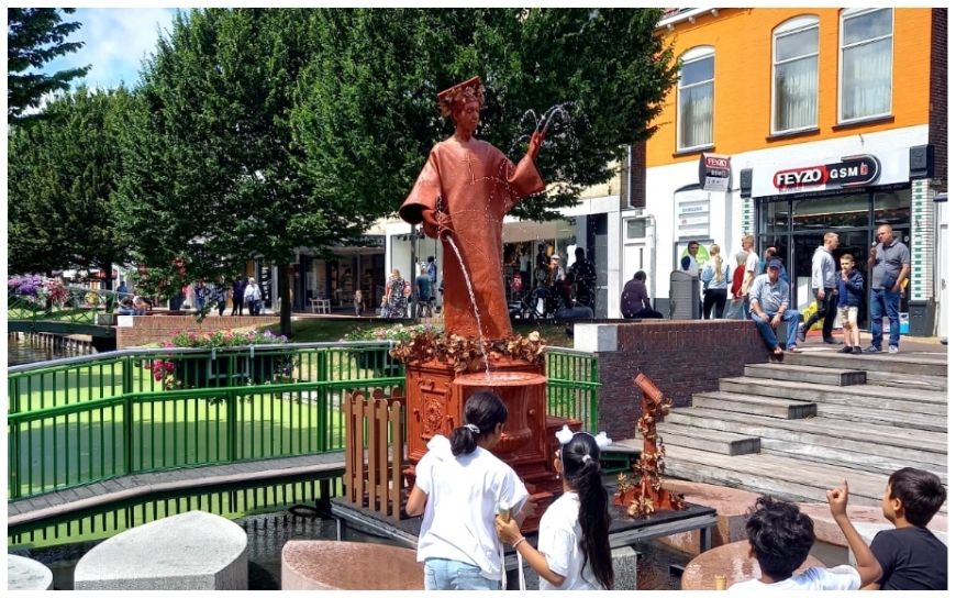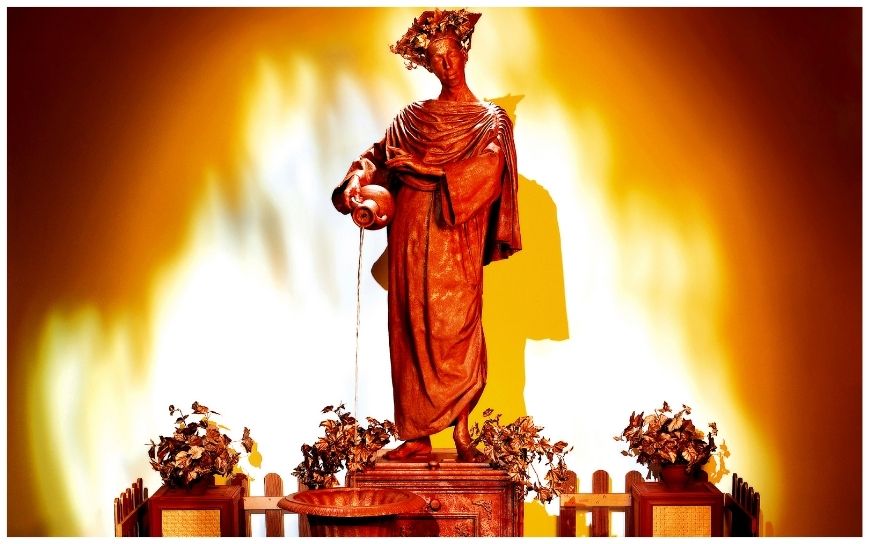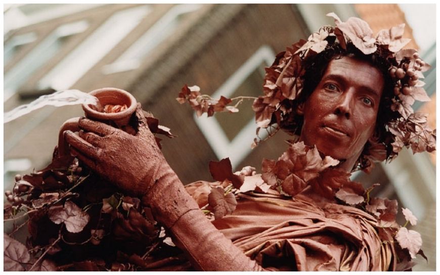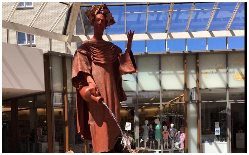 Als brenger van het Aquarius tijdperk vertegenwoordigt dit levende standbeeld de overgang naar een tijdperk van vernieuwing, waarin water symbool staat voor zuivering, stroming en verandering.