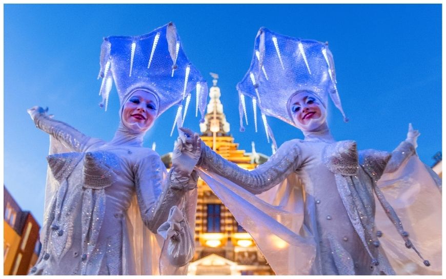 Deze steltenlopers brengen een vleugje winterse magie met zich mee. Ze passen perfect bij evenementen met het thema wit en winter. Laat uw gasten betoveren door hun gracieuze verschijning en voel de sfeer oplichten.